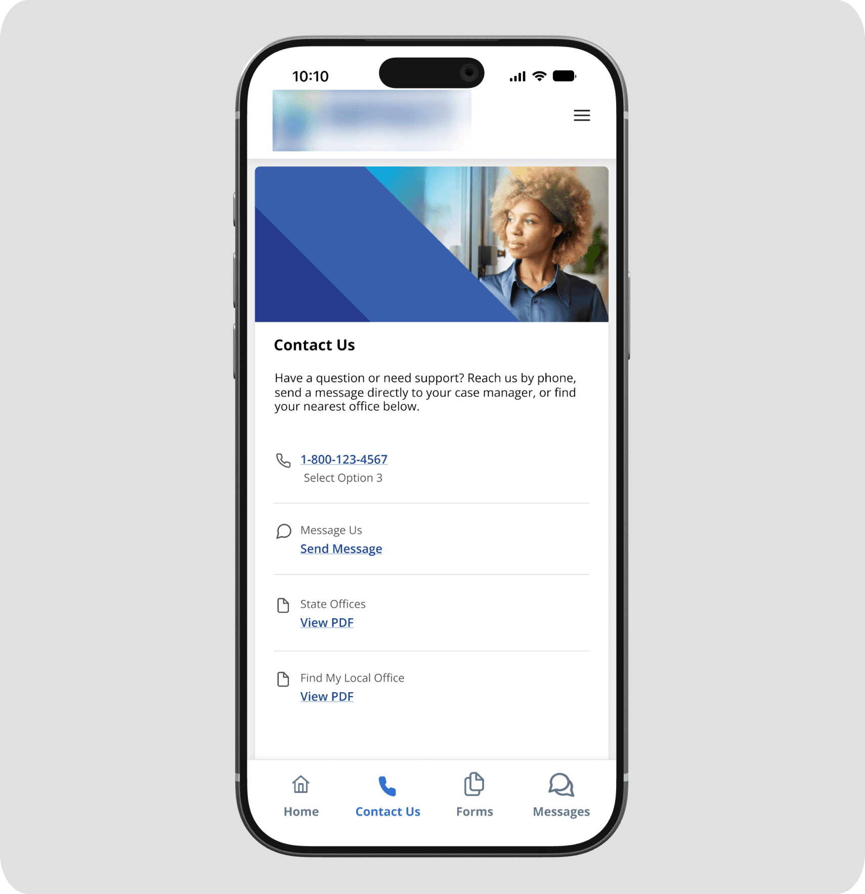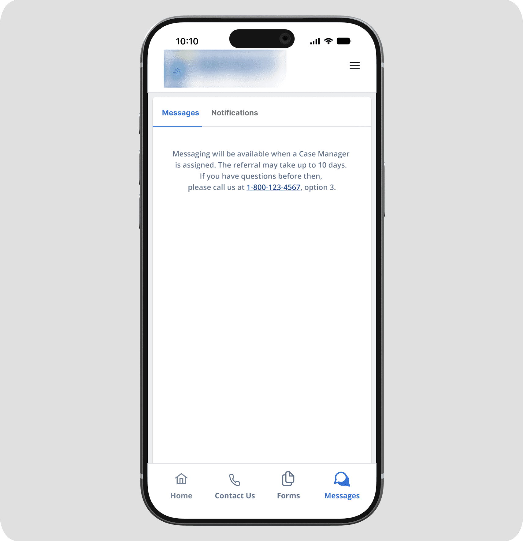 New participants can wait up to ten days before a case manager is assigned to them. During that window, the messaging feature has nothing to offer yet. Two options were on the table: hide the Messages button entirely, or gray it out. Neither felt right. A hidden button offers no explanation and could make a returning user think the feature had disappeared. A grayed out button invites tapping and frustration with no path forward. The approach I landed on was to keep the Messages section fully accessible, with a clear and warm message explaining what is happening, how long it typically takes, and a phone number to call in the meantime. The feature becomes a promise rather than a dead end. Participants know it is coming, they know why it is not available yet, and they are not left wondering whether something is wrong with the app or with their account.