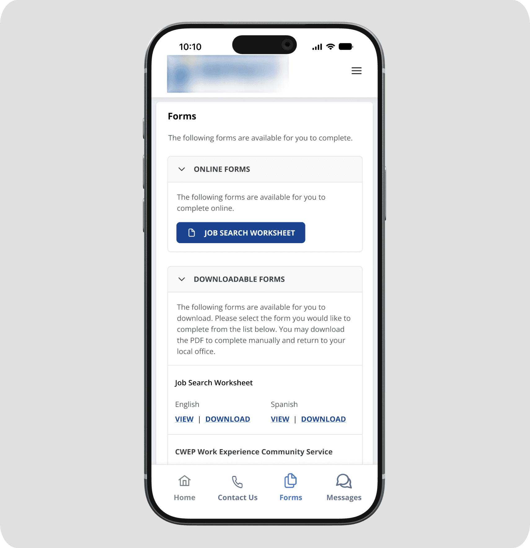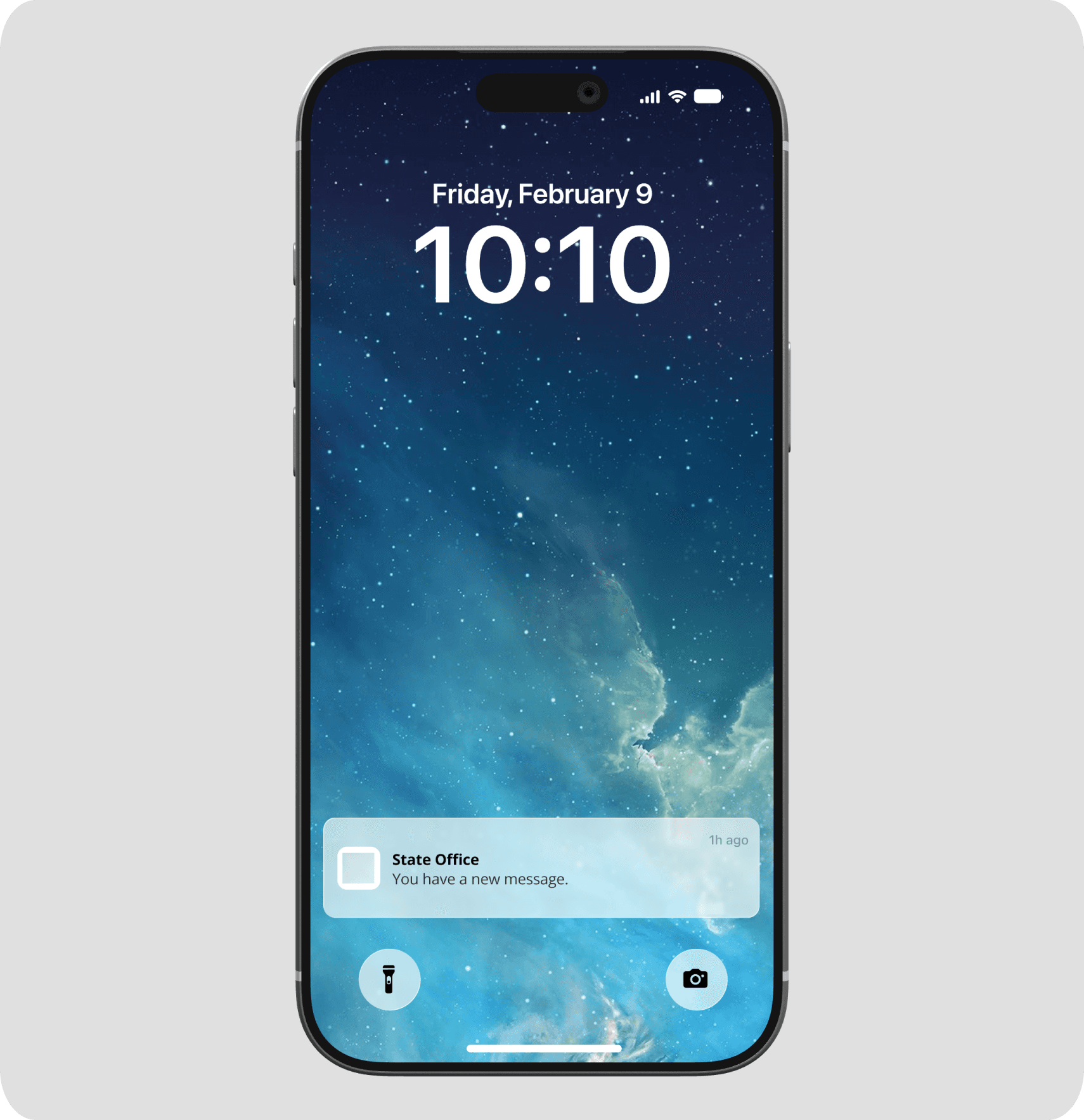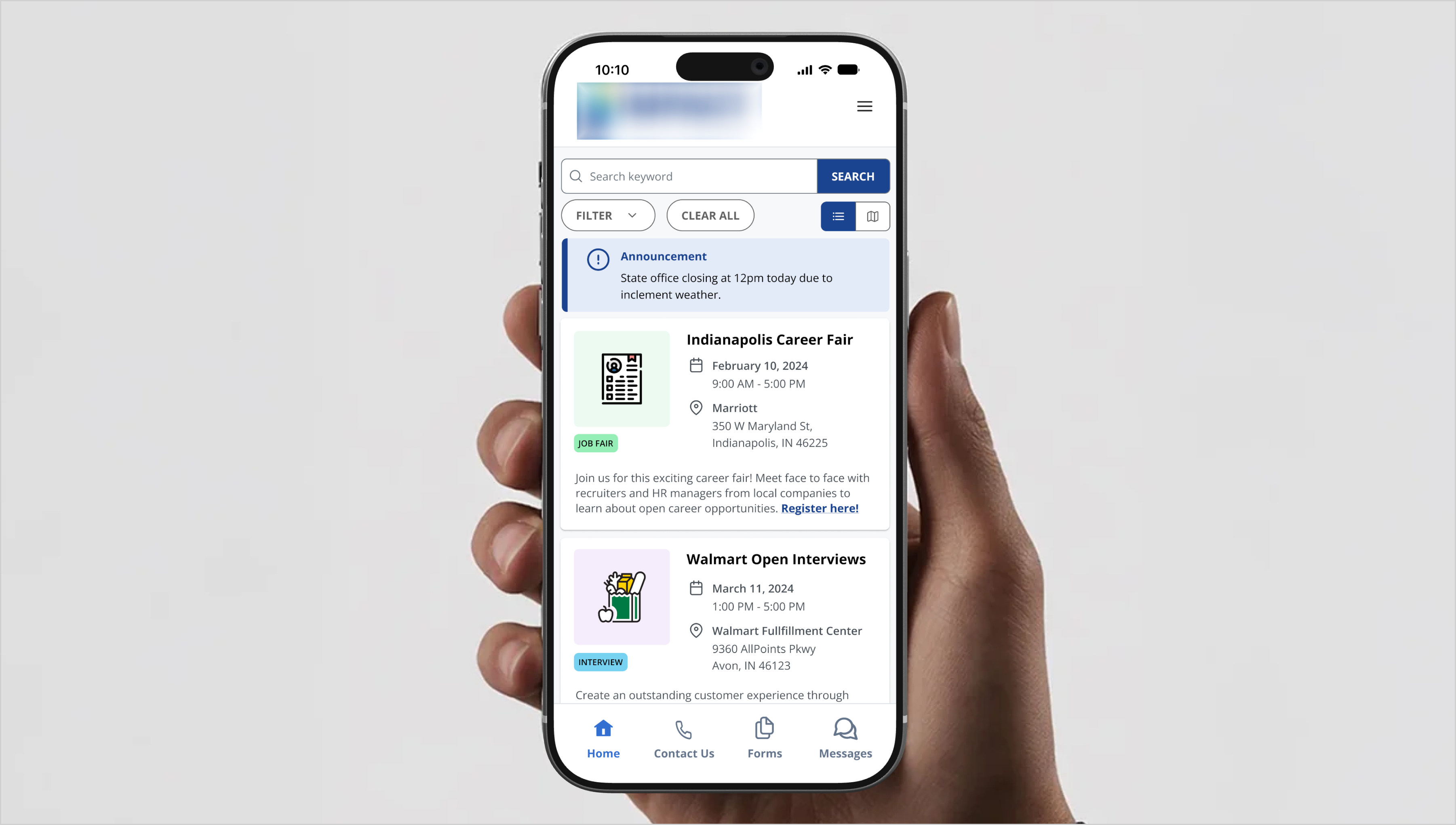Participants receive push notifications when a new message arrives, surfacing the app even when it is not open. Inside the app, a tabbed Messages section separates direct messages from program notifications like office closures, career event reminders, and form deadlines. That separation keeps personal conversations from getting buried under program announcements while still ensuring participants see time-sensitive information. On the case manager side, unread message counts appear directly in the navigation of the desktop system so nothing requires a separate check or an additional tool. Both users stay informed through the surfaces they are already using.